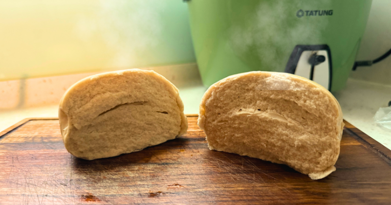 相較之下,如果饅頭體積很大但重量很輕,可能發酵時間較短,或使用較多膨脹劑來增加體積。